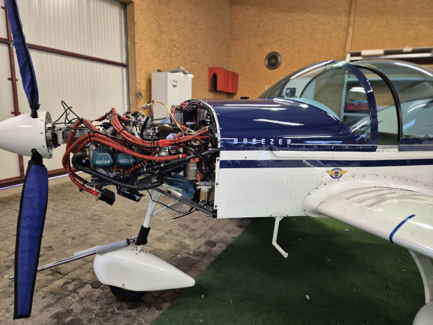 BreezerBj 2003blau/weissRotax 912 ULS - 100 PSblau getönte Kanzel (Aerostyle)Motor ca. 850h / Zelle 1230h - wird noch geflogenNeuer Dreiblattpropeller Neuform (Bodenversteller) - noch keine 10helektrische Höhen und QuerrudertrimmungFeststellbremse2 Gashebel (re+li)elektronische Verbrauchsanzeige+elektronische Temperaturanzeigen(außen + Ansaugung)GPS NAV (braucht Update)Funk/Transponder/Vario/Fahrt/ elektronische TankreserveanzeigeIntercom80 Liter Tankfassungsvermögenu.v.m was Standard in einen Flieger gehörtJahresprüfung neuRettung Junkers Magnum neu geprüft bis 2029In 2025 alle Schläuche - Öl/Wasser/Benzin neu+ BrandschutzNeue Sitze Leder Alcantara blau/grauInterieur Leder grau