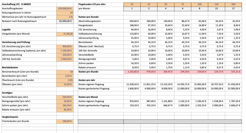 Ich habe eine FK 9 Mark VI Baujahr Mai 2023. Die Kosten in einem Jahr sind bisher immer so um die 9000.-€ die ich für die FK 9 ausgegeben habe. Dazu muß man natürlich auch Abschreibung oder Wertverlust noch dazu rechnen. Der Flieger ist bisher 285 h geflogen, sind also ca 100 h im Jahr.
