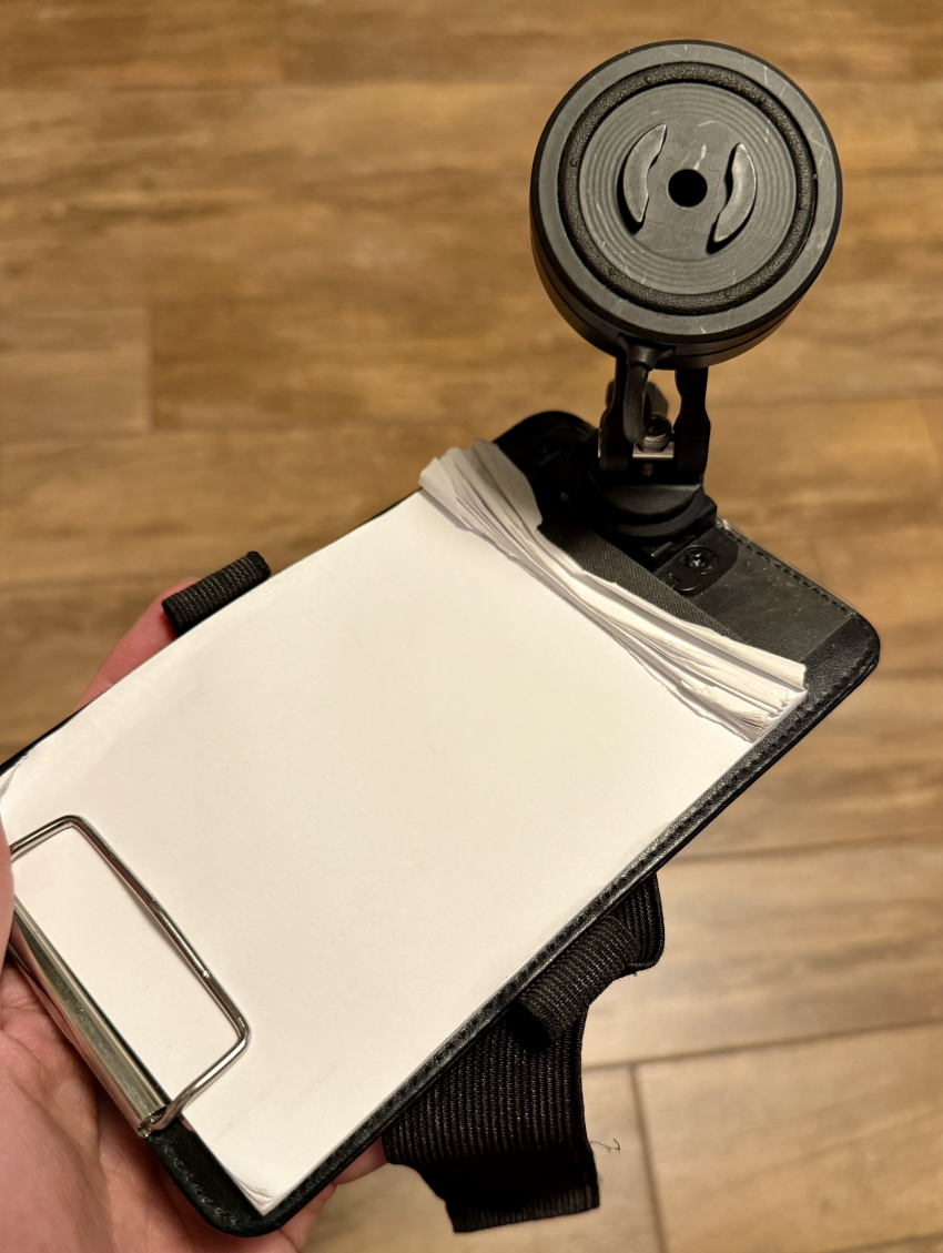 Ich hatte mir als Charterkunde aus einem Piccolo Kneepad und Handyhalterungen von SP-Connect ein Handyhalterung-Kneepad gebastelt. Hier auf dem Foto mit mechanischer Verbindung zum Handy. Ginge auch als MagSafe, mit und ohne Ladefunktion.