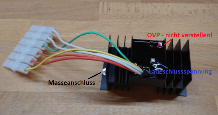 - Nachdem diese grundlegenden Probleme behoben waren, konnte ich über die Einstellung der Ladeschlussspannung am Regler eine Einstellung erreichen, die sowohl den Akku lädt, als auch nicht zum Ansprechen der OVP führt. Herr Schicke empfiehlt eindringlich, die Werkseinstellung des OVP nicht zu verändern, sondern nur die Einstellung der Ladeschlussspannung! Sollte das nicht zum Ergebnis führen, schein eine Fehlersuche, wie oben beschrieben, sinnvoll.