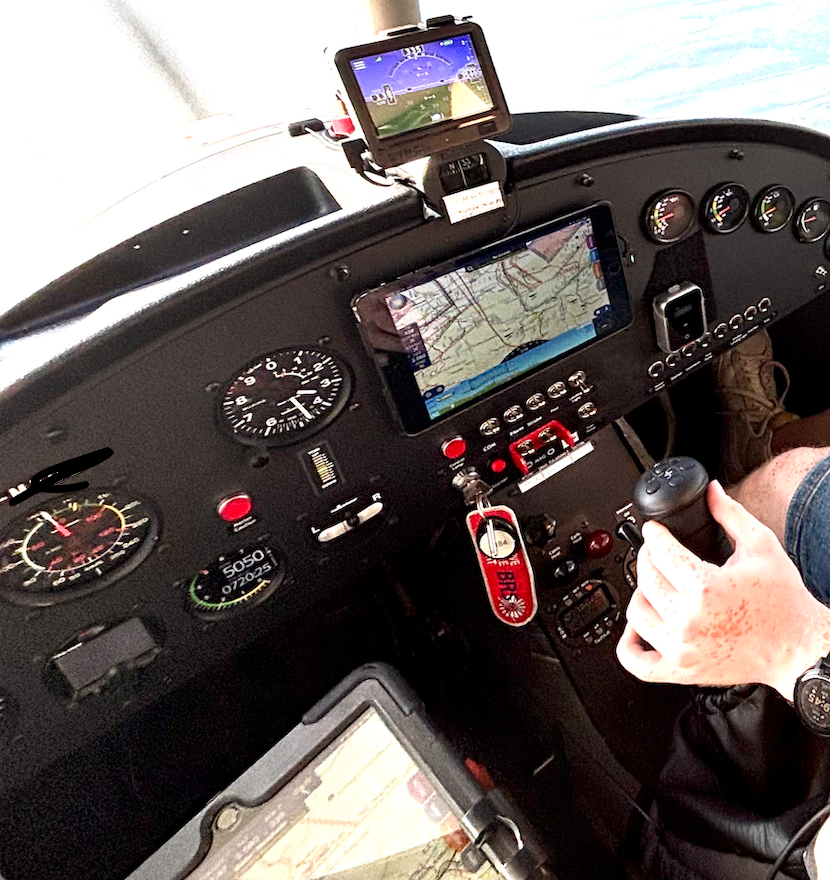 Beim Erwerb der C42 war ein digitales und für mich optisch ansprechendes und bezahlbares Konzept bei Comco nicht erkennbar - also Uhrenladen mit I Pad mini. Dann - drei Jahre später kam das Dynon D3 pocket auf den Markt und fliegt jetzt als Rückfallebene mit. Seit dieser Saison verzichte ich auf Papier im Cockpit. Das I Pad mini fliegt kontinuierlich in meinem Lieblingsmaßstab (1: 350.000) - kein Wackeln, kein Verstellen. Das I Pad auf dem Schenkel ist die Spielwiese - leicht erreichbar, durch abstützen am Rand trifft man meist auch den richtigen Bereich. Der Funkkanal wird per Bluetooth-Adapter SD-Link direkt aus SD gesendet. Wettercheck, Heran-Zoomen der Sehenswürdigkeiten und Kritzelblock in einem. Ich bin sehr zufrieden mit der Kombi. Zur Wahrheit gehört aber auch: Hätte ich jetzt ein paar Euros mehr, würde ich in ein ansatzweise moderner wirkendes Flugzeug als meine C 42 ein schönes Glascockpit einbauen.