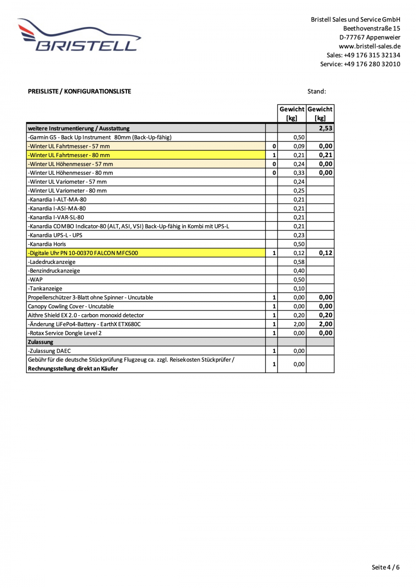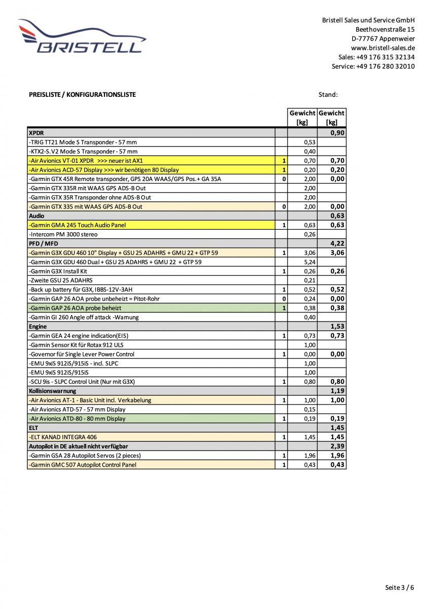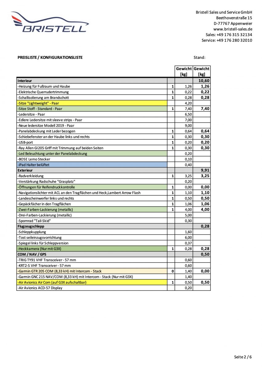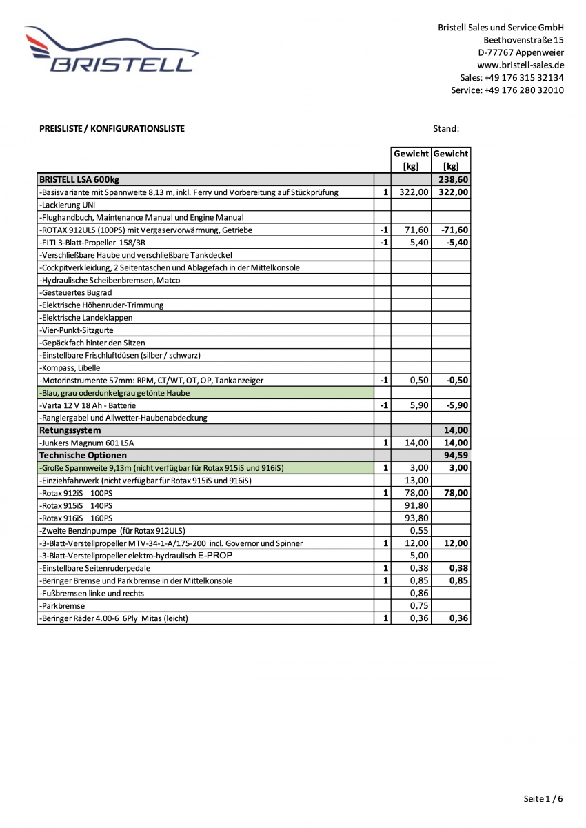 wir sind derzeit mit unserem neuen Projekt, der Anschaffung eines Bristell Classic UL mit 600 kg, beschäftigt. Wir haben mal