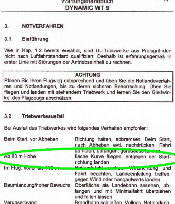 Maraio schrieb:Also ich hab mir jetzt das ′Flug- und Wartungshandbuch′ unserer WT-9 (nochmal) angeguckt. Da gibt es eine Checkliste für ′Normalverfahren′. Keine für Emergency.