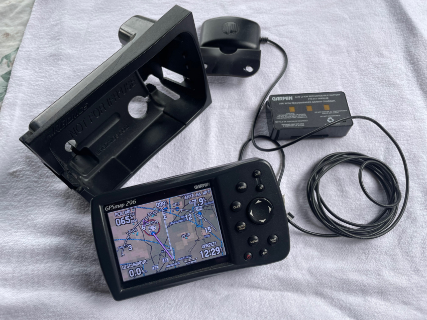 Gerät mit Halterung für Instrumentenbrett, Akku, GPS-Antenne und Anschlusskabel